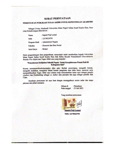 SURAT PERNYATAAN - SAPUTRI PUJI LESTARI ADMINISTRASI NEGARA.pdf - Published Version