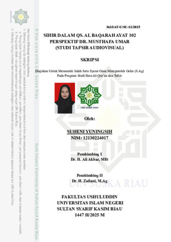 SUHENI YUNINGSIH (2025) SIHIR DALAM QS. AL BAQARAH AYAT 102 PERSPEKTIF DR. MUSTHAFA UMAR (STUDI TAFSIR AUDIOVISUAL). Skripsi thesis, UNIVERSITAS ISLAM NEGERI SULTAN SYARIF KASIM.