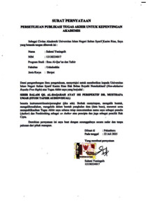SURAT PERNYATAAN SERAH TERIMA - SUHENI YUNINGSIH Ilmu Alquran dan Tafsir S1.pdf - Published Version Download (116kB) | Preview |