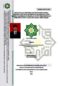ABSTRAK Irfan Efendi (2025) : Penggunaan Metode Cognitive Behavioral Therapy (CBT) Dalam Mengatasi Trauma Anak Korban Kekerasan Seksual di UPT Perlindungan Perempuan Dan Anak (PPA) Kota Pekanbaru Penelitian ini bertujuan menjelaskan penggunaan metode Cognitive Behavioral Therapy (CBT) dalam mengatasi trauma anak korban kekerasan seksual di UPT Perlindungan Perempuan dan Anak (PPA) Kota Pekanbaru. UPT PPA merupakan instansi di bawah Pemerintah Provinsi Riau yang memiliki layanan khusus pemeriksaan dan pemulihan korban. Rumusan masalah penelitian ini adalah bagaimana penerapan metode CBT pada anak korban kekerasan seksual di UPT PPA Kota Pekanbaru. Metode penelitian menggunakan pendekatan kualitatif deskriptif dengan teknik wawancara mendalam, observasi, dan dokumentasi. Data dianalisis melalui reduksi, penyajian, dan penarikan kesimpulan secara sistematis. Penelitian ini menunjukkan bahwa terapi Cognitive Behavioral Therapy (CBT) yang diterapkan di UPT PPA Kota Pekanbaru efektif membantu pemulihan psikologis anak korban kekerasan seksual. Pasien menunjukkan perubahan signifikan, seperti penurunan gejala trauma, peningkatan kepercayaan diri, regulasi emosi, dan keterlibatan sosial. Dengan pendekatan yang empatik dan ramah anak, CBT berhasil membentuk kemandirian psikologis serta identitas baru sebagai penyintas yang berdaya. Hasil penelitian menunjukkan bahwa terapi Cognitive Behavioral Therapy (CBT) yang diterapkan oleh Ibu Feni Sriwahyuni, M.Psi., di UPT PPA Kota Pekanbaru efektif membantu pemulihan psikologis anak korban kekerasan seksual. Setiap tahapan terapi dilaksanakan secara sistematis, reflektif, dan ramah anak, serta didukung oleh pendekatan bermain, visualisasi, dan keterlibatan keluarga. Hasil observasi menunjukkan perubahan signifikan pada pasien, seperti peningkatan kepercayaan diri, regulasi emosi, keterlibatan sosial, serta kemandirian dalam berpikir dan merencanakan masa depan, yang menandai terbentuknya ketahanan psikologis dan identitas baru sebagai penyintas yang berdaya. Kata Kunci : Implementasi, Cognitive Behavioral Therapy,Trauma Pelecehan Seksual, UPT PPA Kota Pekanbaru