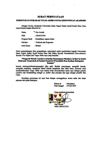 PERNYATAAN PUBLIKASI - NUR AZIZAH Pendidikan Agama Islam.pdf - Published Version
