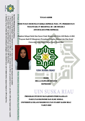 DELLA HAPSARI NINGSIH, - (2025) PEMUTUSAN HUBUNGAN KERJA SEPIHAK PADA PT. PERKEBUNAN NUSANTARA IV REGIONAL III AIR MOLEK 1 (STUDI KASUS PHK SEPIHAK). Skripsi thesis, Universitas Islam Negeri Sultan Syarif Kasim Riau.