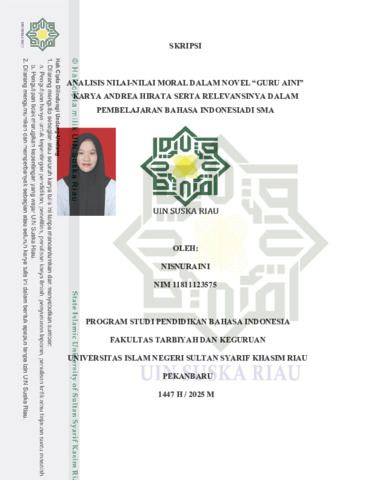 NISNURAINI, - (2025) ANALISIS NILAI-NILAI MORAL DALAM NOVEL “GURU AINI” KARYA ANDREA HIRATA SERTA RELEVANSINYA DALAM PEMBELAJARAN BAHASA INDONESIADI SMA. Skripsi thesis, UNIVERSITAS ISLAM NEGERI SULTAN SYARIF KASIM RIAU.