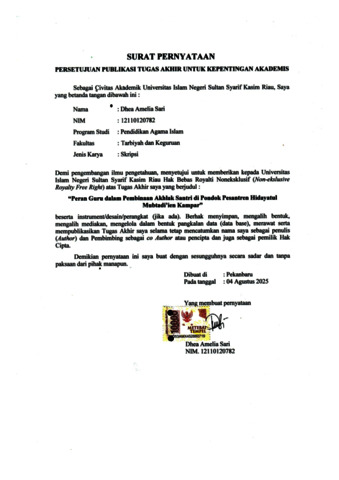 DHEA AMELIA SARI, - (2025) PERAN GURU DALAM PEMBINAAN AKHLAK SANTRI DI PONDOK PESANTREN HIDAYATUL MUBTADI'IEN KAMPAR. Skripsi thesis, UIN SUSKA.