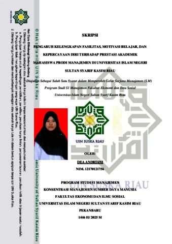 DEA ANDRIANI, - (2025) PENGARUH KELENGKAPAN FASILITAS, MOTIVASI BELAJAR DAN KEPERCAYAAN DIRI TERHADAP PRESTASI AKADEMIK MAHASISWA PRODI MANAJEMEN DI UNIVERSITAS ISLAM NEGERI SULTAN SYARIF KASIM RIAU. Skripsi thesis, UNIVERSITAS ISLAM NEGERI SULTAN SYARIF KASIM RIAU.