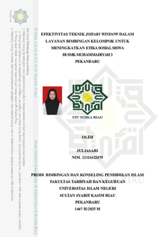 EFEKTIVITAS TEKNIK JOHARI WINDOW DALAM LAYANAN BIMBINGAN KELOMPOK UNTUK MENINGKATKAN ETIKA SOSIAL SISWA DI SMK MUHAMMADIYAH 3 PEKANBARU