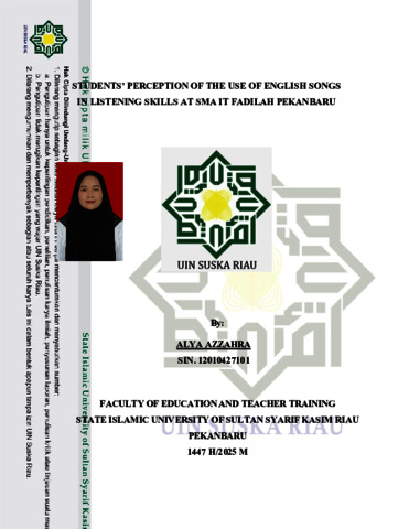 ALYA AZZAHRA, - (2025) STUDENTS’ PERCEPTION OF THE USE OF ENGLISH SONGS IN LISTENING SKILLS AT SMA IT FADILAH PEKANBARU. Skripsi thesis, UIN SUSKA.
