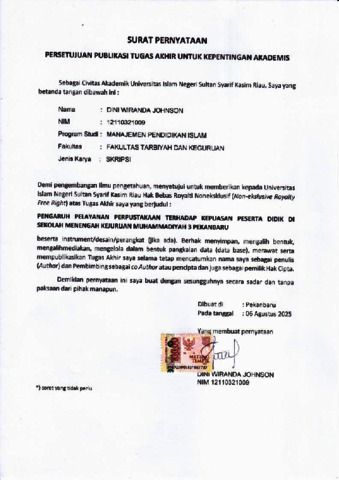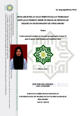 JOHNSON, DINI WIRANDA (2025) PENGARUH PELAYANAN PERPUSTAKAAN TERHADAP KEPUASAN PESERTA DIDIK DI SEKOLAH MENENGAH KEJURUAN MUHAMMADIYAH 3 PEKANBARU. Skripsi thesis, UIN SUSKA.
