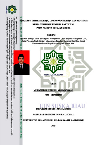 MUHAMMAD JUMADIL ABDIMANSYAH, - (2025) PENGARUH DISIPLIN KERJA, LINGKUNGAN KERJA DAN MOTIVASI KERJA TERHADAP KINERJA KARYAWAN PADA PT. DUTA HITA JAYA DURI. Skripsi thesis, UNIVERSITAS ISLAM NEGERI SULTAN SYARIF KASIM RIAU.