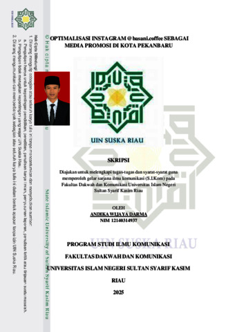 ANDIKA WIJAYA DARMA, - (2025) OPTIMALISASI INSTAGRAM @basani.coffee SEBAGAI MEDIA PROMOSI DI KOTA PEKANBARU. Skripsi thesis, Universitas Islam Negeri Sultan Syarif Kasim Riau.