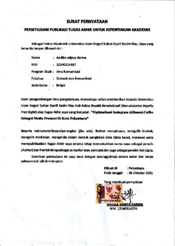 izin publis - ANDIKA WIJAYA DARMA ILMU KOMUNIKASI.pdf - Published Version Download (104kB) | Preview |
