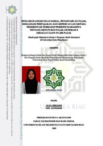 ALYA NISLIANI, - (2025) PENGARUH LINGKUNGAN SOSIAL, PENGETAHUAN PAJAK, SOSIALISASI PERPAJAKAN, DAN KEPERCAYAAN KEPADA PEMERINTAH TERHADAP PERSEPSI MAHASISWA TENTANG KEPATUHAN PAJAK GENERASI Z SEBAGAI CALON WAJIB PAJAK (STUDI PADA MAHASISWA STRATA 1 PROGRAM STUDI AKUNTANSI DI UNIVERSITAS KOTA PEKANBARU). Skripsi thesis, Universitas Islam Negeri Sultan Syarif Kasim Riau.