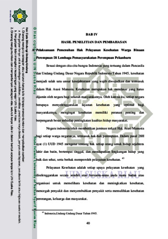 IRMA HAYA HARAHAP, - (2025) PELAKSANAAN PEMENUHAN HAK PELAYANAN KESEHATAN WARGA BINAAN PEREMPUAN DI LEMBAGA PEMASYARAKATAN PEREMPUAN KELAS II A KOTA PEKANBARU. Skripsi thesis, Universitas Islam Negeri Sultan Syarif Kasim Riau.