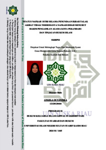 ANGELA OCTAVINKA, - (2025) STATUS NAFKAH ISTRI SELAMA PENUNDAAN IKRAR TALAK AKIBAT TIDAK TERSEDIANYA NAFKAH IDDAH MENURUT HAKIM PENGADILAN AGAMA KOTA PEKANBARU DAN TINJAUAN HUKUM ISLAM. Skripsi thesis, Universitas Islam Negeri Sultan Syarif Kasim Riau.
