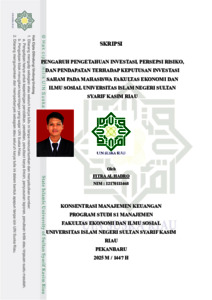 FITRA AL HADRO, - (2025) PENGARUH PENGETAHUAN INVESTASI, PERSEPSI RISIKO, DAN PENDAPATAN TERHADAP KEPUTUSAN INVESTASI SAHAM PADA MAHASISWA FAKULTAS EKONOMI DAN ILMU SOSIAL UNIVERSITAS ISLAM NEGERI SULTAN SYARIF KASIM RIAU. Skripsi thesis, Universitas Islam Negeri Sultan Syarif Kasim Riau.