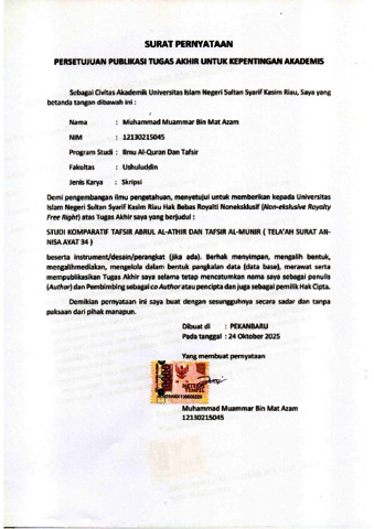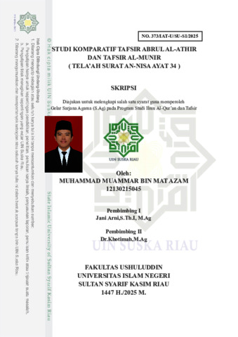 MUHAMMAD MUAMMAR BIN MAT AZAM, - (2025) STUDI KOMPARATIF TAFSIR ABRUL AL-ATHIR DAN TAFSIR AL-MUNIR ( TELA’AH SURAT AN-NISA AYAT 34 ). Skripsi thesis, Universitas Islam Negeri Sultan Syarif Kasim Riau.