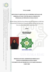 DILLAH FITRIANI, - (2025) KEPATUHAN WAJIB PAJAK DALAM MEMBAYAR PAJAK AIR PERMUKAAN PADA UNIT PELAKSANA TEKNIS (UPT) PENGELOLAAN PENDAPATAN BAGAN BATU. Laporan thesis, UNIVERSITAS ISLAM NEGRI SULTAN SYARIF KASIM RIAU.