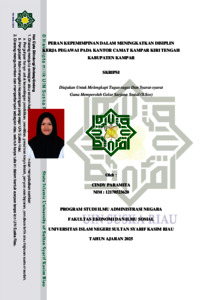 CINDY PARAMITA, - (2025) PERAN KEPEMIMPINAN DALAM MENINGKATKAN DISIPLIN KERJA PEGAWAI PADA KANTOR CAMAT KAMPAR KIRI TENGAH KABUPATEN KAMPAR. Skripsi thesis, UNIVERSITAS ISLAM NEGRI SULTAN SYARIF KASIM RIAU.