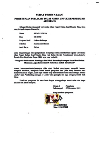Penulisan skripsi ini dilatarbelakangi oleh pernikahan yang mempunyai harapan yang dapat menjadi ikatan yang abadi, namun realita yang dapat kita lihat bahwah adanya angka perceraian yang terus meningkat, fenomena yang ditemukan pada pasangan suami istri ini pada umumnya kurangnya komunikasi, unsur ekonomi dan pemahaman pembinaan dalam rumah tangga dengan adanya bimbingan pra nikah sebagai solusi tempat pembelajaran dalam persiapan pernikahan yang di harapkan dapat mengurangi angka perceraian, dan diharapkan untuk menjadi solusi masalah pada rumah tangga di bimbingan pra nikah sesuai dengan pedoman pelaksanaan Direktorat Jenderal Konseling Masyarakat Islam Kementerian Agama Republik Indonesia oleh karena itu peneliti perlu mengetahui dan bertujuan bagaimana pelaksanaan bimbingan pra nikah di KUA Kecamatan Payung Sekaki ini dan pengaruh bagi pasangan suami istri setelah mengikuti bimbingan pra nikah ini. Pada penelitian ini penulis menggunakan pendekatan kualitatif berupa metode analisis deskriptif, menghasilkan data deskriptif yang berupa tulisan, ucapan, dan perilaku dari responden yang diamati. dengan sumber data primer berinteraksi secara langsung berupa wawancara dari pihak KUA yaitu salah satu penguhulu dan pasangan 13 suami dan 13 istri, adapun sekunder sebagai data pengumpul dari observasi dan dokumentasi, dan teknik analisis data pada penelitian ini secara deskriptif dengan menampilkan narasi dan pendekatan induktif sebagai pengalaman informan. Adapun hasil penelitian menunjukkan bahwa, dari pelaksanaan bimbingan pra nikah di wilayah tersebut telah mengalami perkembangan yang signifikan dan pengaruh yang di dapat pada pasutri adalah kemampuan untuk berkomunikasi lebih jelas, meningkatkan kepercayaan satu sama lain, kemampuan untuk menyelesaikan konflik tanpa kekerasan, kemampuan untuk mengelola keuangan keluarga, dan kesadaran akan pentingnya saling menghargai dalam rumah tangga.bimbingan pra nikah ini dapat di maknai sangat berdampak positif bagi pasangan suami istri untuk membina keluarga dan dapat menjadi salah satu langkah pencegahan dalam menekan angka perceraian. karena itu pengembangan kualitas materi dan kedisplinan dalam pelaksanaannya sangat penting agar instruksi ini tidak hanya menjadi formalitas, tetapi benar-benar membentuk ketahanan keluarga. Kata kunci: Bimbingan Pra Nikah, Perceraian, Komunikasi, Kepercayaan, Ketahanan Keluarga.