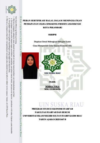 NORMA YOLA, - (2025) PERAN SERTIFIKASI HALAL DALAM MENINGKATKAN PENDAPATAN USAHA SINGKONG FROZEN AMANIKYGO KOTA PEKANBARU. Skripsi thesis, Universitas Islam Negeri Sultan Syarif Kasim Riau.