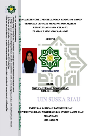 MONICA SURYANI PANGGABEAN, - (2025) PENGARUH MODEL PEMBELAJARAN SYNDICATE GROUP TERHADAP CRITICAL THINKING PADA MATERI LINGKUNGAN SISWA KELAS XI DI SMAN 2 TUALANG KAB. SIAK. Skripsi thesis, Universitas Islam Negeri Sultan Syarif Kasim Riau.