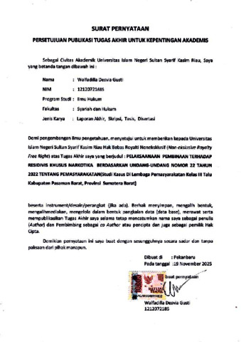 PERNYATAAN - WALFADILLA DESVIA GUSTI Ilmu Hukum S1.pdf - Published Version