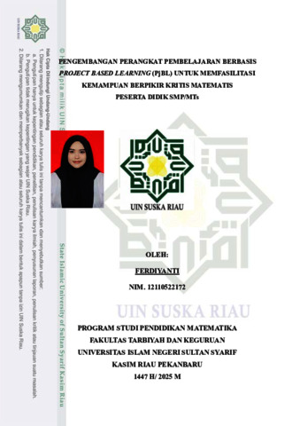PENDIDIKAN MATEMATIKA JUDUL : PENGEMBANGAN PERANGKAT PEMBELAJARAN BERBASIS PROJECT BASED LEARNING (PJBL) UNTUK MEMFASILITASI KEMAMPUAN BERPIKIR KRITIS MATEMATIS PESERTA DIDIK SMP/MTS