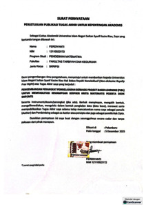FERDIYANTI, - (2025) PENDIDIKAN MATEMATIKA JUDUL : PENGEMBANGAN PERANGKAT PEMBELAJARAN BERBASIS PROJECT BASED LEARNING (PJBL) UNTUK MEMFASILITASI KEMAMPUAN BERPIKIR KRITIS MATEMATIS PESERTA DIDIK SMP/MTS. Skripsi thesis, Universitas Islam Negeri Sultan Syarif Kasim Riau.