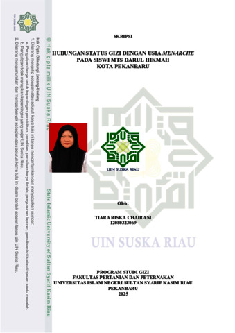 TIARA RISKA CHAIRANI, - (2025) HUBUNGAN STATUS GIZI DENGAN USIA MENARCHE PADA SISWI MTS DARUL HIKMAH KOTA PEKANBARU. Skripsi thesis, Universitas Islam Negeri Sultan Syarif Kasim Riau.
