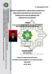SAPARI RAMADHAN, - (2025) FUNGSI MANAJEMEN KEPALA SEKOLAH DALAM MENGATUR MEDIA SOSIAL BAGI HUMAS DI MTS GERBANG SARI BASERAH. Skripsi thesis, Universitas Islam Negeri Sultan Syarif Kasim Riau.
