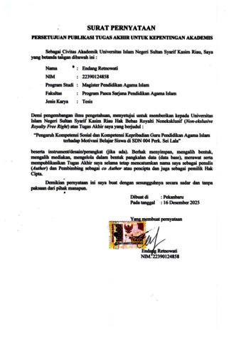 PERNYATAAN PUBLIKASI - ENDANG RETNOWATI Pendidikan Agama Islam (S2).pdf - Published Version Download (417kB) | Preview |