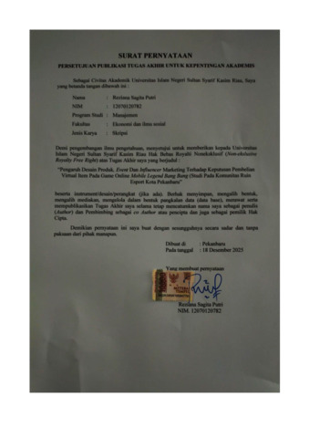 PERNYATAAN PUBLIKASI - reziana sagita putri.pdf - Published Version Download (192kB) | Preview |