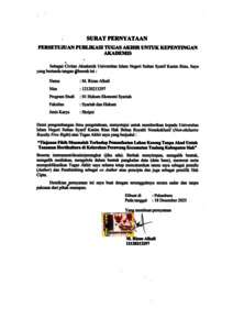 Penelitian ini di latar belakangi adanya praktik pemanfaatan lahan kosong tanpa akad untuk tanaman hortikultura di Kelurahan Perawang, Kecamatan Tualang, Kabupaten Siak. Fenomena ini muncul ketika masyarakat setempat memanfaatkan lahan milik Yayasan Pendidikan Persada Indah (YPPI) yang terbengkalai, tanpa adanya perjanjian tertulis maupun lisan dengan pemilik lahan. Rumusan masalah penelitian ini adalah bagaimana praktik pemanfaatan lahan kosong tanpa akad untuk tanaman hortikultura yang terjadi di Kelurahan Perawang Kecamatan Tualang Kabupaten Siak, serta bagaimana tinjauan Fiqih Muamalah mengenai praktik pemanfaatan lahan kosong tanpa akad untuk tanaman hortikultura tersebut. Jenis penelitian yang digunakan dalam penelitian ini adalah penelitian lapangan (field research) yang berlokasi di Kelurahan Perawang Kecamatan Tualang Kabupaten Siak dengan Informan terdiri dari 1 pemilik lahan (informan kunci), 4 petani pengelola (informan utama), dan 1 ketua pemuda setempat (informan pendukung). Sumber data primer yang diperoleh lansung dari orang yang di wawancarai dan sumber data sekunder dalam bentuk dokumen resmi dan buku-buku yang berhubungan dengan objek penelitian. Teknik pengumpulan data penelitian ini dengan menggunakan teknik Observasi, Wawancara, dan Dokumentasi. Analisa yang dilakukan dengan analisis deskriftif kualitatif. Dari hasil penelitian dapat di simpulkan bahwa praktik pemanfaatan lahan kosong untuk penanaman tanaman hortikultura di Kelurahan Perawang, Kecamatan Tualang, Kabupaten Siak, dilakukan oleh masyarakat sekitar sebagai upaya memaksimalkan lahan yang tidak terpakai. Praktik ini muncul atas inisiatif masyarakat sendiri yang melihat peluang dari lahan-lahan milik pihak lain yang tidak digunakan secara aktif. Namun, praktik ini termasuk dalam kategori ghasab menurut fikih muamalah, karena pemanfaatan harta milik orang lain tanpa akad sah. Meskipun tidak menyebabkan kerugian, namun secara prinsip bertentangan dengan aturan pemanfaatan harta dalam islam yang menekankan pentingnya akad, izin, dan kejelasan hak serta tanggung jawab kedua belah pihak. Kata Kunci: Fikih Muamalah, Ihya’ Al-Mawat, Ghasab.