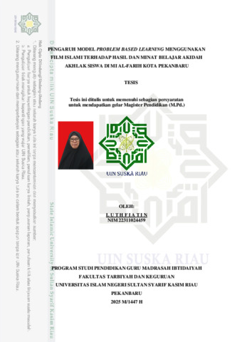 LUTHFIATIN, - (2025) PENGARUH MODEL PROBLEM BASED LEARNING MENGGUNAKAN FILM ISLAMI TERHADAP HASIL DAN MINAT BELAJAR AKIDAH AKHLAK SISWA DI MI AL-FARIH KOTA PEKANBARU. Thesis thesis, Universitas Islam Negeri Sultan Syarif Kasim Riau.