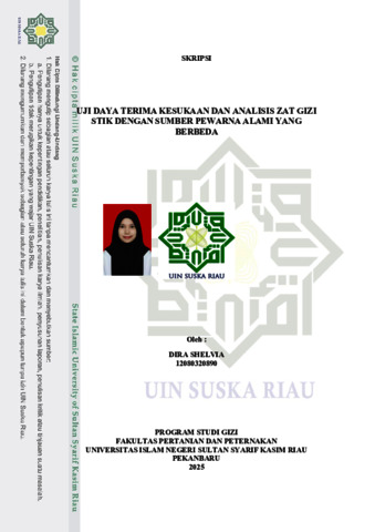 DIRA SHELVIA, - (2025) UJI DAYA TERIMA KESUKAAN DAN ANALISIS ZAT GIZI STIK DENGAN SUMBER PEWARNA ALAMI YANG BERBEDA. Skripsi thesis, Universitas Islam Negeri Sultan Syarif Kasim Riau.