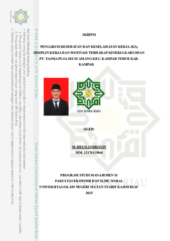 M. DECO ANDRIZON, - (2025) PENGARUH KESEHATAN DAN KESELAMATAN KERJA (K3), DISIPLIN KERJA DAN MOTIVASI TERHADAP KINERJA KARYAWAN PT. TASMA PUJA SEI SUAMANG KEC. KAMPAR TIMUR KAB. KAMPAR. Skripsi thesis, Universitas Islam Negeri Sultan Syarif Kasim Riau.