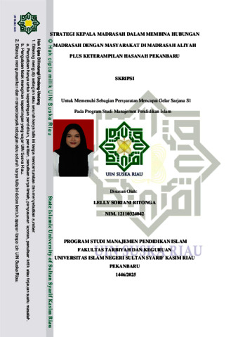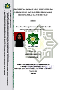 LELLY SORIANI RITONGA, - (2025) STRATEGI KEPALA MADRASAH DALAM MEMBINA HUBUNGAN MADRASAH DENGAN MASYARAKAT DI MADRASAH ALIYAH PLUS KETERAMPILAN HASANAH PEKANBARU. Skripsi thesis, Universitas Islam Negeri Sultan Syarif Kasim Riau.