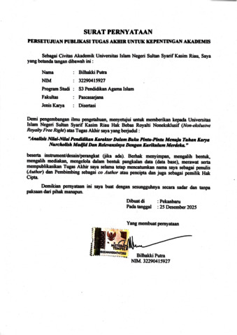 PERNYATAAN PUBLIKASI - Bilhakki Putra Pendidikan Agama Islam S3.pdf - Published Version Download (533kB) | Preview |