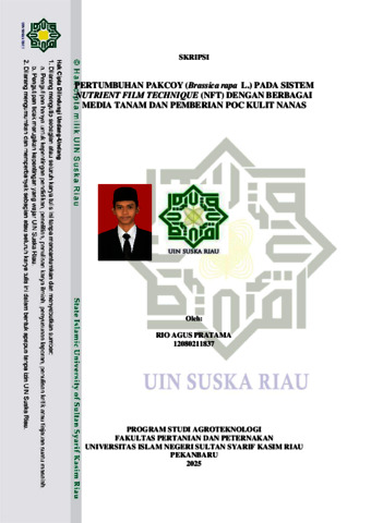 RIO AGUS PRATAMA, - (2025) PERTUMBUHAN PAKCOY (Brassica rapa L.) PADA SISTEM NUTRIENT FILM TECHNIQUE (NFT) DENGAN BERBAGAI MEDIA TANAM DAN PEMBERIAN POC KULIT NANAS. Skripsi thesis, UNIVERSITAS ISLAM NEGRI SULTAN SYARIF KASIM RIAU.