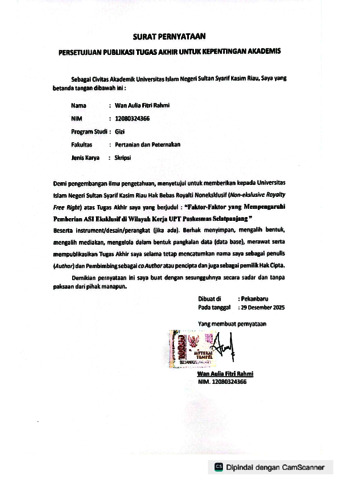SURAT PERNYATAAN WAN AULIA (1) - 2020_ Wan Aulia Fitri Rahmi.pdf - Published Version Download (343kB) | Preview |