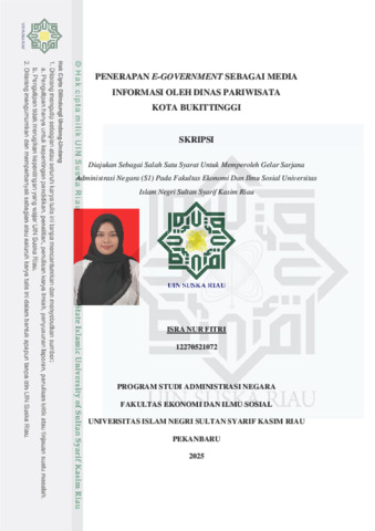 ABSTRAK PENERAPAN E-GOVERNMENT SEBAGAI MEDIA INFORMASI OLEH DINAS PARIWISATA KOTA BUKITTINGGI OLEH : Isra Nur Fitri 12270521072 Penerapan e-government sebagai media informasi pariwisata bertujuan meningkatkan kualitas pelayanan publik melalui pemanfaatan teknologi informasi. Penelitian ini bertujuan menganalisis penerapan e-government oleh Dinas Pariwisata Kota Bukittinggi serta mengidentifikasi faktor penghambatnya. Penelitian menggunakan metode kualitatif dengan pendekatan deskriptif melalui wawancara, observasi, dan dokumentasi.Hasil penelitian menunjukkan bahwa Dinas Pariwisata Kota Bukittinggi telah menerapkan e-government melalui website visitbukittinggi.id dan media sosial sebagai media penyampaian informasi pariwisata, namun penerapannya belum optimal. Faktor penghambat dalam penerapan e-government meliputi: 1) keterbatasan sumber daya manusia dalam pengelolaan media digital, 2) infrastruktur teknologi yang belum memadai, 3) pengembangan fitur digital yang tidak berjalan secara berkala, 4) keterbatasan wewenang dalam penggunaan teknologi baru, dan 5) ketergantungan pada pelatihan eksternal. Kondisi tersebut berdampak pada rendahnya efektivitas penyampaian informasi dan interaksi dengan masyarakat. Penelitian ini menyimpulkan bahwa penerapan e-government memerlukan penguatan kapasitas internal dan inovasi digital agar pelayanan informasi pariwisata dapat berjalan lebih efektif. Kata Kunci: E-government, Media Informasi, Pariwisata, Dinas Pariwisata Kota Bukittinggi