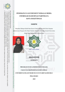 ISRA NUR FITRI, - (2026) PENERAPAN E-GOVERNMENT SEBAGAI MEDIA INFORMASI OLEH DINAS PARIWISATA KOTA BUKITTINGGI. Skripsi thesis, UNIVERSITAS ISLAM NEGERI SULTAN SYARIF KASIM RIAU.