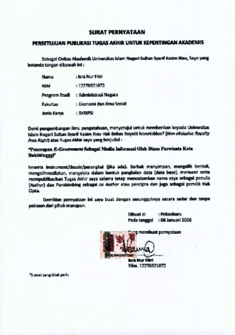 SURAT PERNYATAAN PUBLIKASI - ISRA NUR FITRI ADMINISTRASI NEGARA.pdf - Published Version Download (225kB) | Preview |