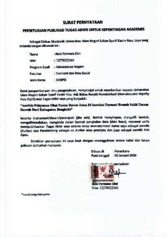 Surat Pernyataan - RISKI PERMATA DINI ADMINISTRASI NEGARA.pdf - Published Version Download (262kB) | Preview |