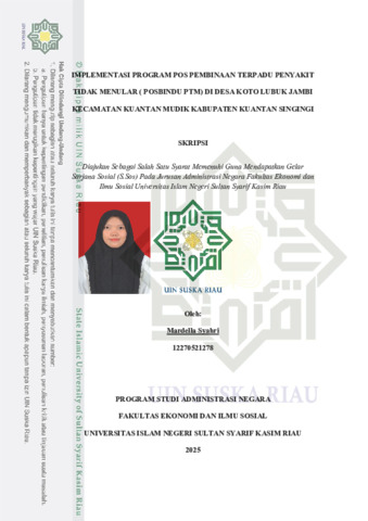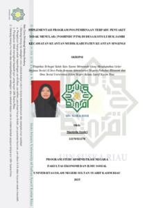 i ABSTRAK IMPLEMENTASI PROGRAM POS PEMBINAAN TERPADU PENYAKIT TIDAK MENULAR ( POSBINDU PTM) DI DESA KOTO LUBUK JAMBI KECAMATAN KUANTAN MUDIK KABUPATEN KUANTAN SINGINGI OLEH: MARDELLA SYAHRI NIM. 12270521278 Penyakit Tidak Menular (PTM) menjadi salah satu penyebab kematian tertinggi di Indonesia dan memberikan beban biaya kesehatan yang besar, terutama pada penyakit jantung, stroke, diabetes, dan kanker. Untuk menekan peningkatan kasus PTM, pemerintah mengembangkan program Pos Pembinaan Terpadu Penyakit Tidak Menular (Posbindu PTM) sebagai upaya promotif dan preventif berbasis masyarakat. Penelitian ini bertujuan untuk mengetahui bagaimana implementasi Program Posbindu PTM di Desa Koto Lubuk Jambi Kecamatan Kuantan Mudik Kabupaten Kuantan Singingi. Penelitian menggunakan metode kualitatif deskriptif dengan teknik pengumpulan data berupa wawancara, observasi, dan dokumentasi. Analisis data dilakukan melalui reduksi data, penyajian data, dan penarikan kesimpulan. Pada penelitian ini menggunakan teori Implementasi kebijakan dari George Edward III. Hasil penelitian menunjukkan bahwa implementasi program Posbindu PTM di Desa Koto Lubuk Jambi sudah berjalan tapi belum optimal. Dari aspek komunikasi, alur penyampaian informasi telah dilakukan melalui bidan desa dan kader, namun masih terdapat kendala seperti keterlambatan akibat sinyal informasi masyarakat yang tidak stabil serta penerimaan informasi yang tidak merata di kalangan. Dari aspek sumber daya, jumlah kader sudah mencukupi, namun kompetensi kader masih rendah karena minimnya pelatihan yang hanya dilakukan satu kali dalam dua tahun. Sarana dan prasarana juga belum memadai, ditandai dengan tidak adanya gedung khusus Posbindu dan pelaksanaan kegiatan yang hanya menumpang di kantor desa atau menggunakan tenda di luar ruangan. Dari aspek disposisi, bidan desa memiliki komitmen yang baik, namun kader masih menghadapi kendala terkait motivasi karena insentif yang rendah dan sering terlambatnya pembayaran. Pada aspek struktur birokrasi, SOP sudah diterapkan. Penelitian ini menyimpulkan bahwa implementasi Posbindu PTM di Desa Koto Lubuk Jambi memerlukan penguatan pada aspek komunikasi, peningkatan kapasitas kader, penyediaan fasilitas yang memadai, serta dukungan anggaran dan koordinasi lintas sektor. Peningkatan edukasi kesehatan dan pelibatan aktif masyarakat menjadi kunci untuk meningkatkan efektivitas program dalam upaya pencegahan dan pengendalian PTM secara berkelanjutan. *Kata kunci:* Implementasi, Posbindu PTM, Penyakit Tidak Menular, Kebijakan Publik