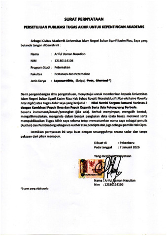 SURAT PERNYATAAN PUBLIKASI - Ariful Usman.pdf - Published Version Download (365kB) | Preview |