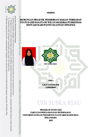 LILIS ANGGRAINI, - (2025) HUBUNGAN PRAKTIK PEMBERIAN MAKAN TERHADAP STATUS GIZI BALITA DI WILAYAH KERJA PUSKESMAS SENTAJO KABUPATEN KUANTAN SINGINGI. Skripsi thesis, Universitas Islam Negeri Sultan Syarif Kasim Riau.