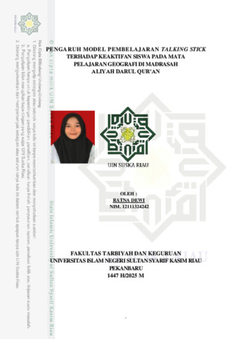 RATNA DEWI, - (2025) PENGARUH MODEL PEMBELAJARAN TALKING STICK TERHADAP KEAKTIFAN SISWA PADA MATA PELAJARAN GEOGRAFI DI MADRASAH ALIYAH DARUL QUR’AN. Skripsi thesis, Universitas Islam Negeri Sultan Syarif Kasim Riau.
