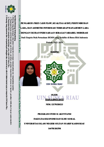 FIONA DWIYANTI, - (2025) PENGARUH FREE CASH FLOW, KUALITAS AUDIT, PERTUMBUHAN LABA, DAN ASIMETRI INFORMASI TERHADAP MANAJEMEN LABA DENGAN UKURAN PERUSAHAAN SEBAGAI VARIABEL MODERASI (STUDI EMPIRIS PADA PERUBAHAN BUMN YANG TERDAFTAR DI BURSA EFEK INDONESIA (BEI) PERIODE 2022-2024). Skripsi thesis, Universitas Islam Negeri Sultan Syarif Kasim Riau.