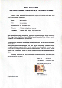 NUR HIDAYAH (2026) DESAIN DAN UJI COBA MEDIA PEMBELAJARAN MENGGUNKAN VIDEO TIKTOK PLAYLIST PADA MATERI HIDROKARBON. Skripsi thesis, UNIVERSITAS ISLAM NEGERI SULTAN SYARIF KASIM RIAU.